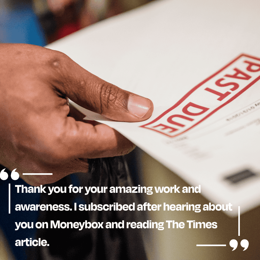“Thank you for your amazing work and awareness. I subscribed after hearing about you on Moneybox and reading The Times article. Post chemo exhausted here, all facets of my life have changed (grateful to be here of course). Thanks for all your hard work!”